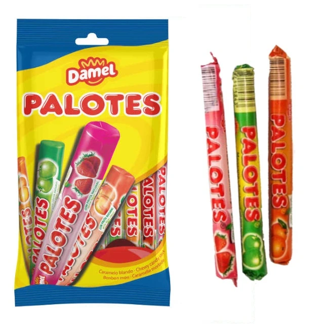 Ingrédients: Sucre, sirop de glucose, graisse végétale (noix de coco), purée de fruits à 4% et jus de fruits concentrés (fraise, pomme, pêche, orange, pastèque), acidifiant E330, arômes, émulsifiant : lécithine de soja, colorants E141, E160a, E162.