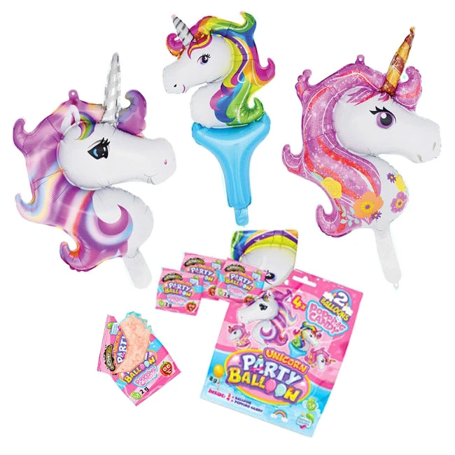 - Comprend 2 ballons licorne à gonfler avec de l’air et 4 sacs de bonbons croustillants.