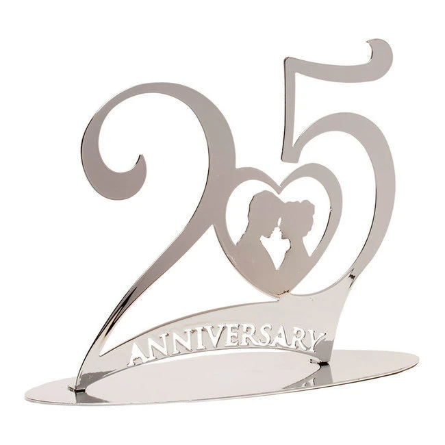Magnifique figurine en métal du 25e anniversaire, de couleur argentée. Une décoration spéciale pour votre anniversaire, un moment unique pour un couple.