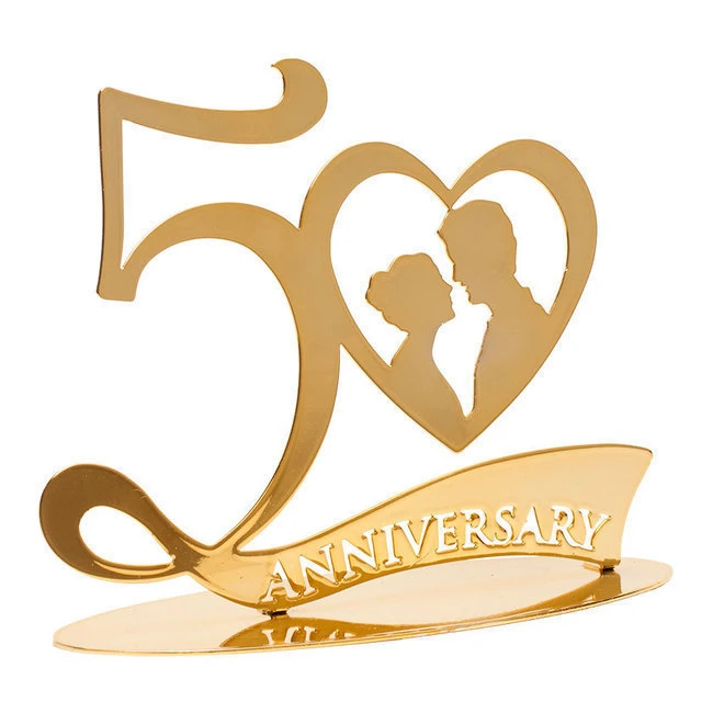 Belle figurine en métal du 50e anniversaire, de couleur dorée. Une décoration spéciale pour votre anniversaire, un moment unique pour un couple.