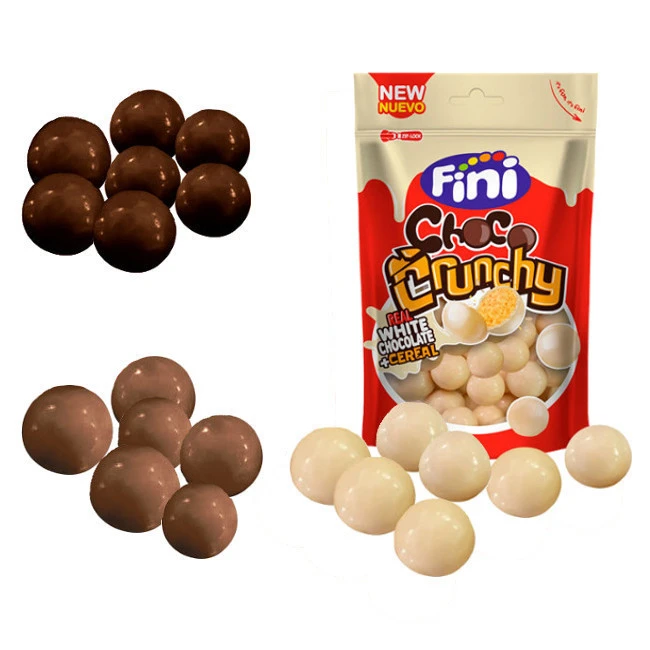 Délicieuses boules de maïs enrobées de chocolat, disponibles en plusieurs parfums.