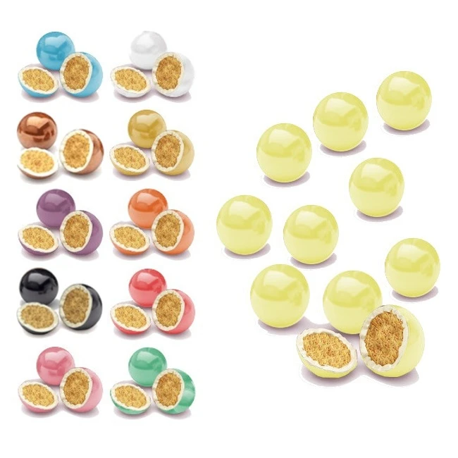 Délicieuses boules de céréales, enrobées de chocolat blanc et colorées.