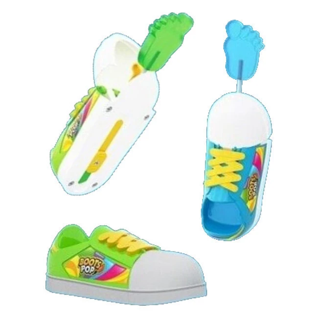 - Des bonbons en forme de pied sortent de l’avant de la chaussure.