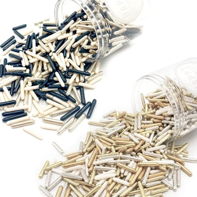 Des paillettes de sucre scintillant en forme de nouilles de sucre en taille XL, parfaites pour décorer toute pâtisserie.
