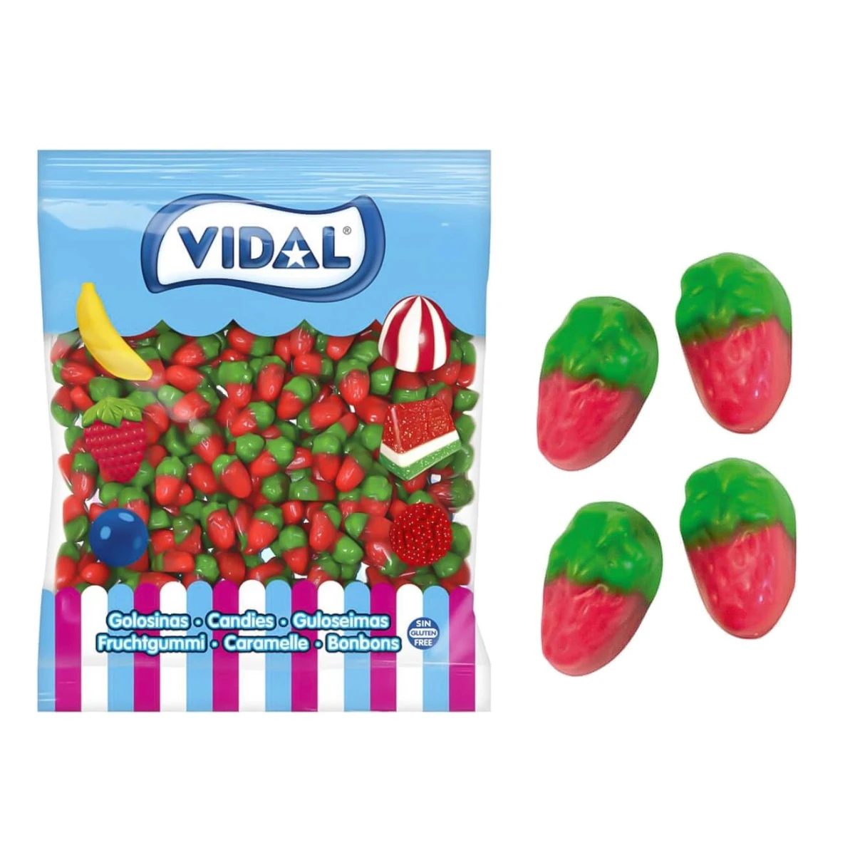 Sac de 1 kilo de bonbons en forme de fraises.