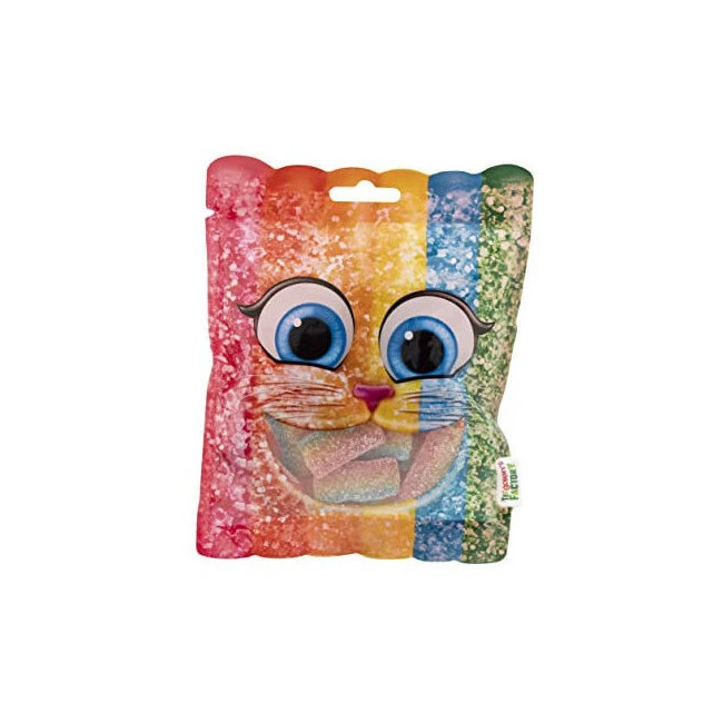 Ingrédients: Sirop de glucose et de fructose, sucre, farine de blé (gluten), amidon, acidifiant (E296), graisse végétale (palme), acidifiants (E330, E270). Régulateurs d’acidité (E325, E331, E350), sel, émulsifiant (E471), arômes, humectant (E422), colorants : E102, E110, E129, E133.