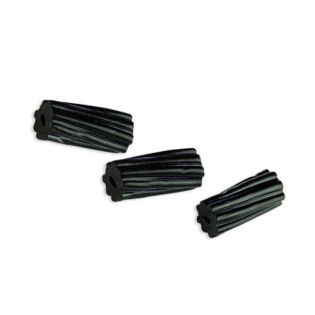 Sachet de cubes de réglisses noirs torsadés et creux à l’intérieur.