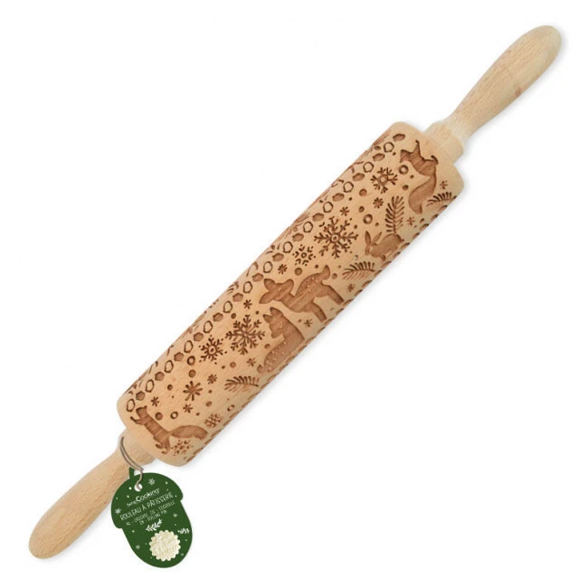 Rouleau à pâtisserie en bois avec lequel vous pouvez texturer et obtenir des dessins très originaux pour vos desserts avec des images de petits animaux de la forêt.